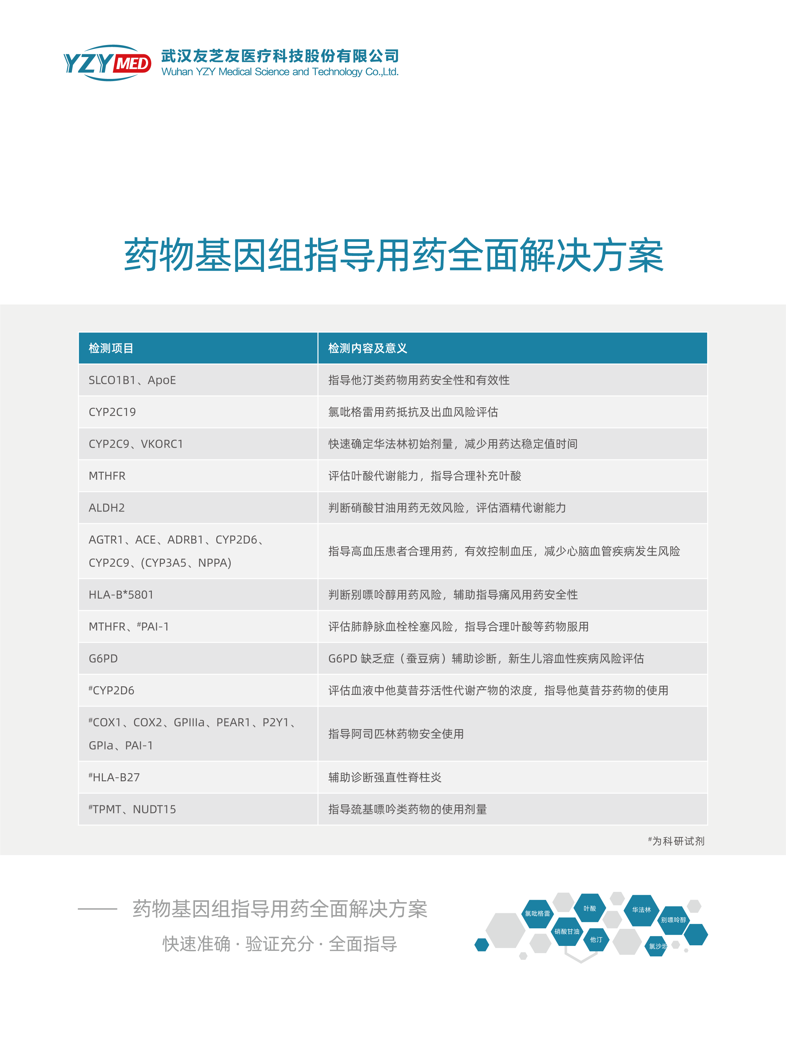 公司的產(chǎn)品線包括個體化用藥基因診斷試劑、腫瘤靶向基因檢測試劑、熒光原位雜交和循環(huán)腫瘤細胞檢測設備四個方向,旨在為臨床醫(yī)生實施個體化治療提供檢測手段,造福社會。未來將繼續(xù)秉持對行業(yè)負責的態(tài)度,以優(yōu)質(zhì)的產(chǎn)品建立行業(yè)標桿,引領藥物基因組學共同發(fā)展!
