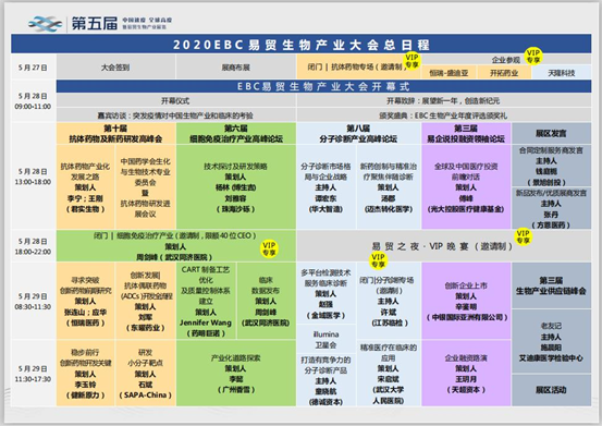 2020易貿(mào)生物產(chǎn)業(yè)大會(EBC)將于2020年5月27日~29日在蘇州知音溫德姆酒店召開。大會聚焦精準醫(yī)療,深入探討診斷、治療、用藥全產(chǎn)業(yè)鏈,融合政策導向、市場投資、技術研發(fā)、臨床應用等熱門話題。此外,EBC的亮點在于開展論壇會議的同時,舉辦生物產(chǎn)業(yè)展覽,形成專業(yè)論壇與行業(yè)展覽的多方聯(lián)動結合,以會帶展,以展促會。