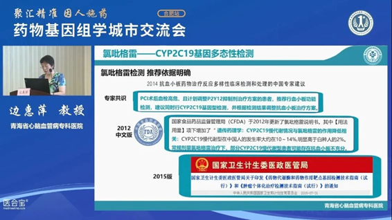此次青海省心腦血管病專科醫(yī)院的邊惠萍院長(zhǎng)分享的報(bào)告是《抗凝及抗血栓藥物基因多態(tài)性檢測(cè)應(yīng)用》。邊院長(zhǎng)從基因組學(xué)切入,闡明合理用藥的必要性以及藥物基因組檢測(cè)的迫切需求,并在基因?qū)用娣謩e對(duì)抗血栓藥物氯吡格雷和抗凝藥物華法林的藥物代謝原理及基因多態(tài)性指導(dǎo)用藥進(jìn)行了詳細(xì)說(shuō)明。經(jīng)過(guò)邊院長(zhǎng)生動(dòng)的演講,線上、線下參會(huì)人員對(duì)基因不同,機(jī)體對(duì)特定藥物的代謝能力不同,從而直接關(guān)系到藥物療效和毒副作用的強(qiáng)弱已經(jīng)有了非常清晰的認(rèn)識(shí)。