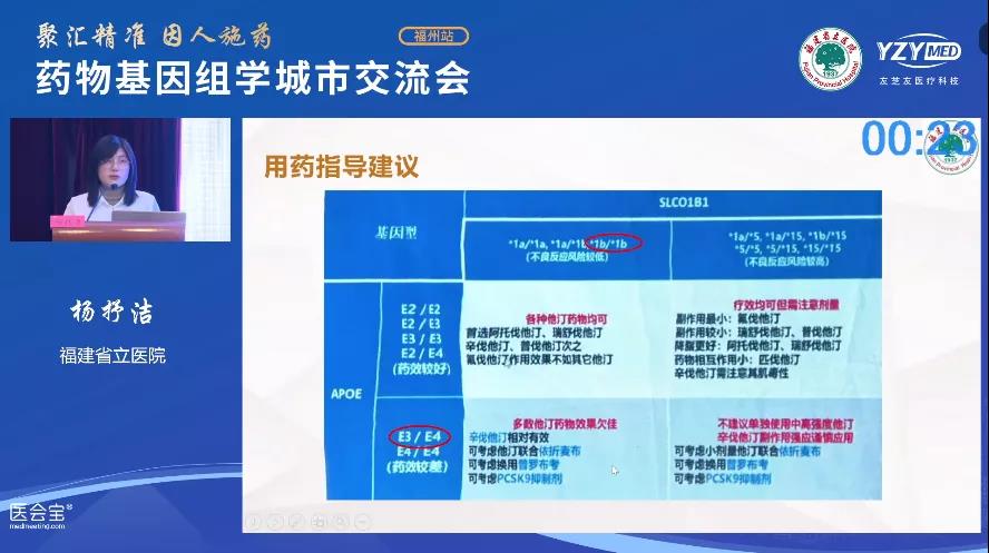 接下來,福建省立醫(yī)院神經(jīng)內(nèi)科的楊抒潔老師為大家?guī)砹嘶驒z測在神經(jīng)內(nèi)科常用藥物的經(jīng)典案例分享。楊老師分享了基因檢測指導(dǎo)氯吡格雷、他汀等藥物的具體應(yīng)用,讓與會(huì)觀眾對檢測的位點(diǎn)和臨床的解讀都有了非常直觀且詳細(xì)的認(rèn)知!