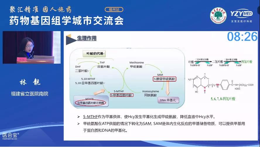 最后,福建省立醫(yī)院南院的林靚主任詳細(xì)地闡述了葉酸代謝相關(guān)基因與葉酸增補(bǔ)、降低生育缺陷等方面的內(nèi)容,并分享了臨床基因指導(dǎo)兩例優(yōu)生優(yōu)育的案例,提示葉酸相關(guān)代謝基因?qū)τ趥湓衅诜蚱揠p方生育指導(dǎo)具有重要作用。