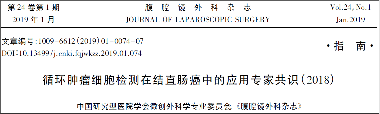 2. 循環(huán)腫瘤細(xì)胞檢測在結(jié)直腸癌中的應(yīng)用專家共識(shí)(2018).腹腔鏡外科雜志,2019,24(01):74-80.