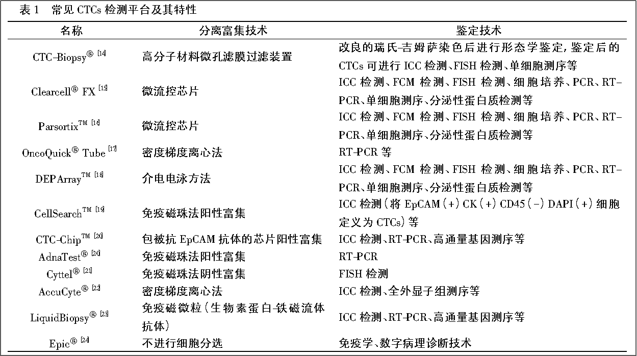 循環(huán)腫瘤細(xì)胞(Circulating tumor cells,CTCs)檢測作為液體活檢的主要代表,相較傳統(tǒng)組織學(xué)活檢,具有創(chuàng)傷小、可重復(fù)檢測、敏感性及特異性高等優(yōu)勢,可提供關(guān)于CRC患者疾病狀態(tài)的實(shí)時(shí)信息,有助于CRC的早期篩查、預(yù)后評(píng)估及治療反應(yīng)監(jiān)測等。眾多國內(nèi)外權(quán)威研究證實(shí)CTCs可動(dòng)態(tài)監(jiān)測結(jié)直腸癌的進(jìn)展?fàn)顟B(tài)。
