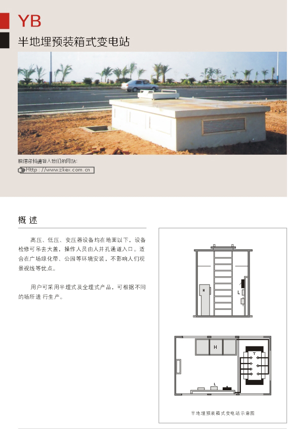 高壓、低壓、變壓器設備均在地面以下,設備檢修可吊去大蓋,操作人員由人井孔通道入口。適合在廣場綠化帶、公園等環境安裝,不影響人們觀景視線等優點。用戶可采用半埋式及全埋式產品,可根據不同的場所進行生產。